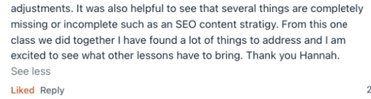You will have to commit some time to creating and managing your own website if you want to do it yourself. But my training makes it as easy as possible to make progress on your website in as little as an hour per week.